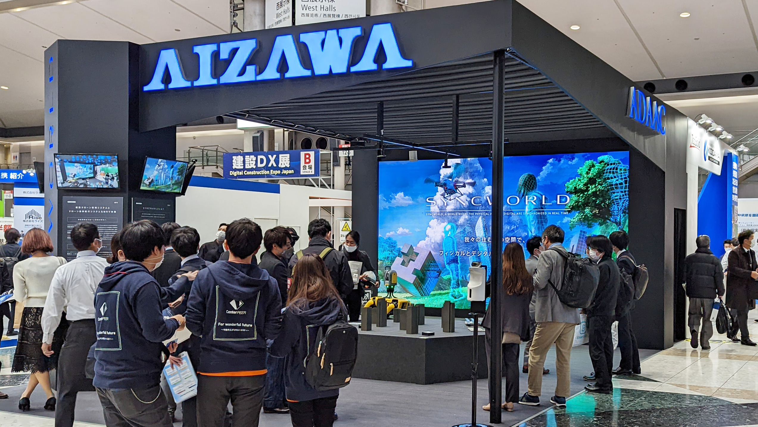 會澤高圧コンクリート株式会社 2021/12/06 - 2021/12/08 2021年12月6日(月)〜8日(水)に東京ビッグサイトで開催された「ジャパンビルド-建築の先端技術展-」内の「第1回建設DX展」において、アイザワグループの一級建築士事務所ADAACと會澤高圧コンクリートが主導、ハニカムラボ、オルツが共同開発を行う「SYNCWORLD™」のコンセプトが体験可能なブース出展。SYNCWORLD™ ENGINEの概要とともに、このエンジンと接続して使用する建設現場管理アプリとドローン自律運行システムのコンセプトを、HoloLens 2によるMixed Reality技術を用いたインタラクティブ体験が可能な展示となっており、来場者からは驚きの声とともに好反応をいただけました。