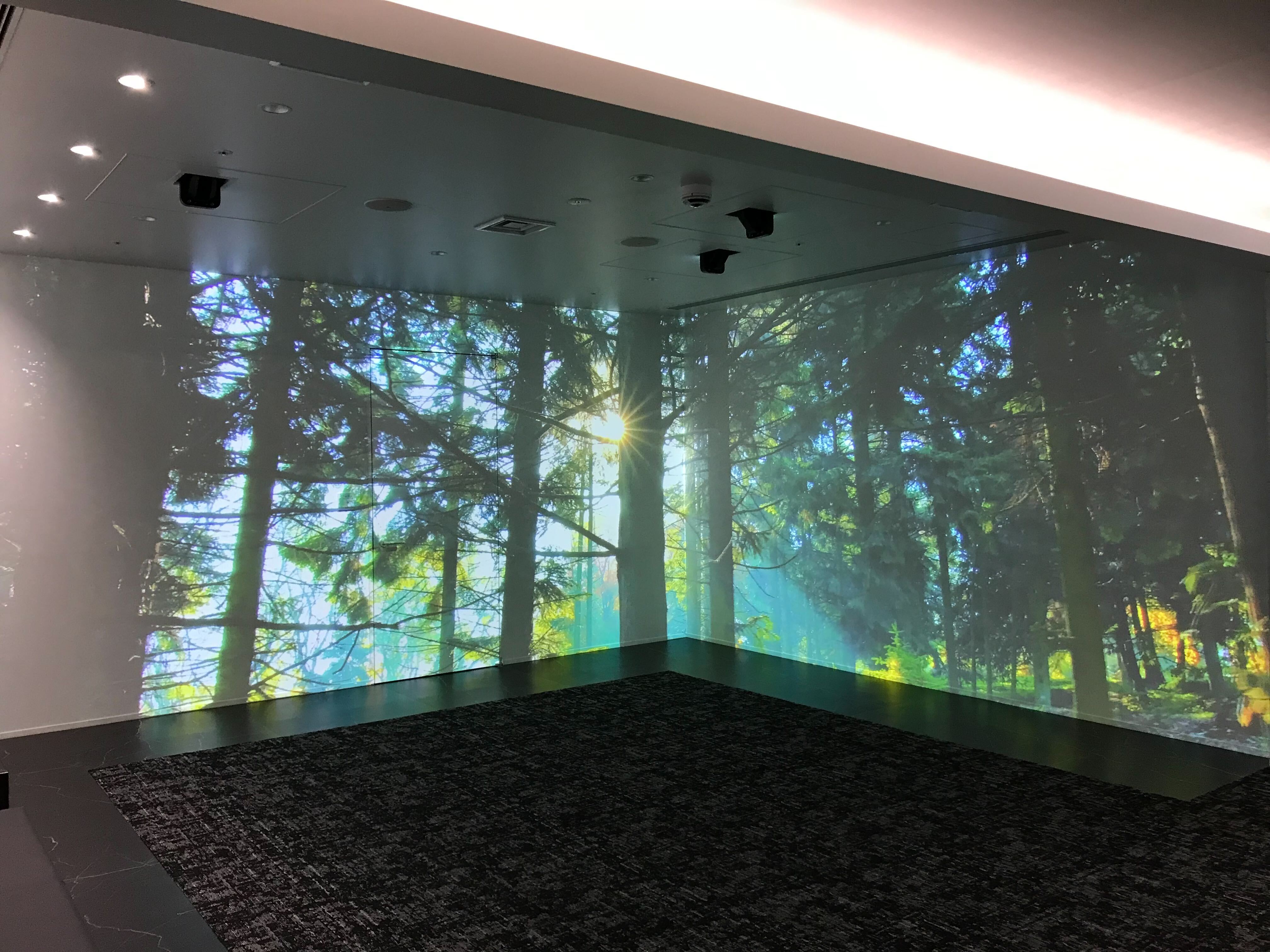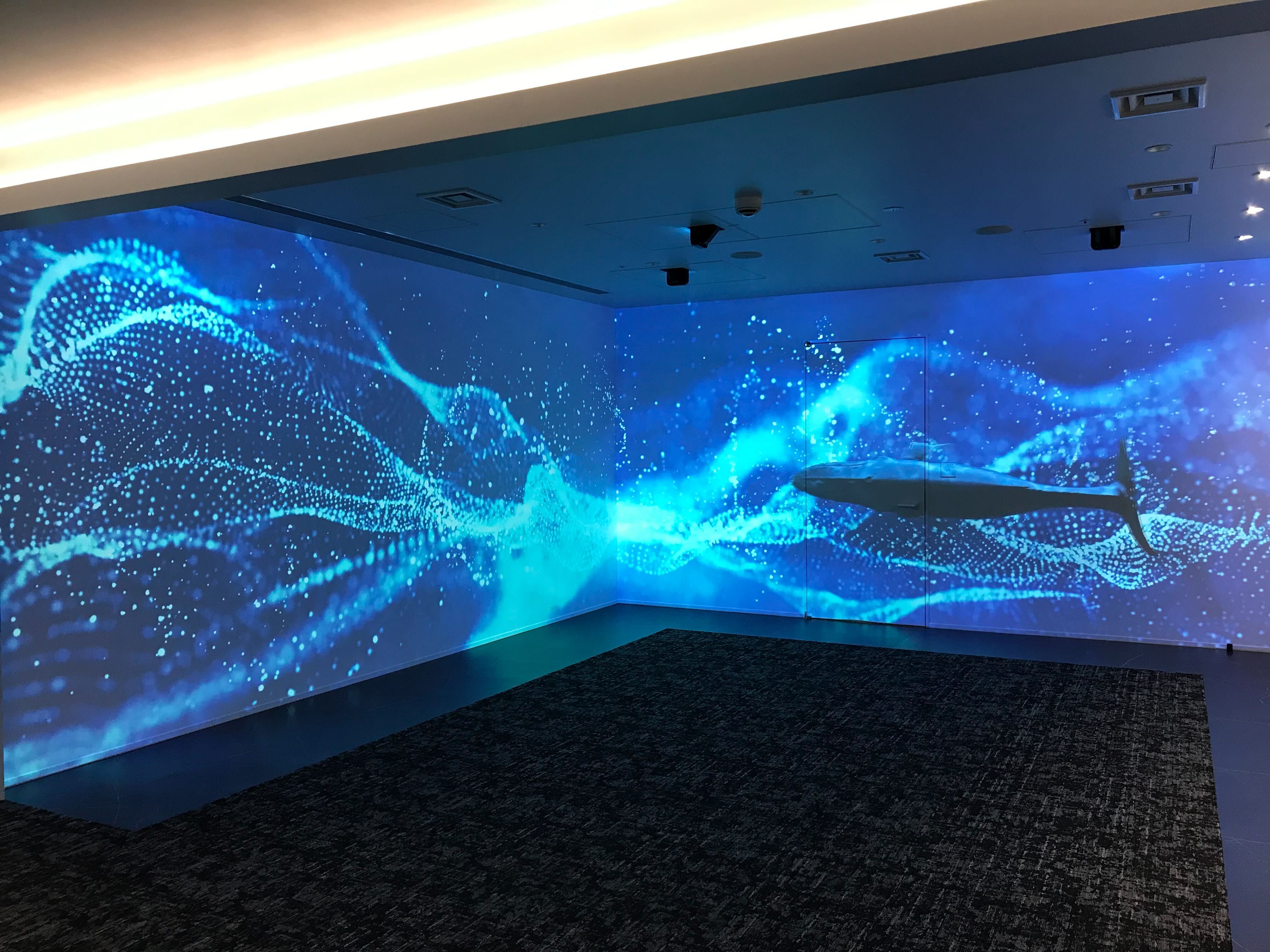 エントランスホールの3面に春夏秋冬を表現した映像を投影しエントランスホールを彩ります。プロジェクター6台を連携することで、3面を一つの面としたダイナミックな映像表現を実現。ただ映像を投影するだけではなく、季節や時間による映像の変化の制御や、センサーで人を認識して映像の切替を行うなど、さまざまなトリガーをもとに映像の切替を行い、見る人を飽きさせない表現を行いました。 Credit Producer:川野 徳道