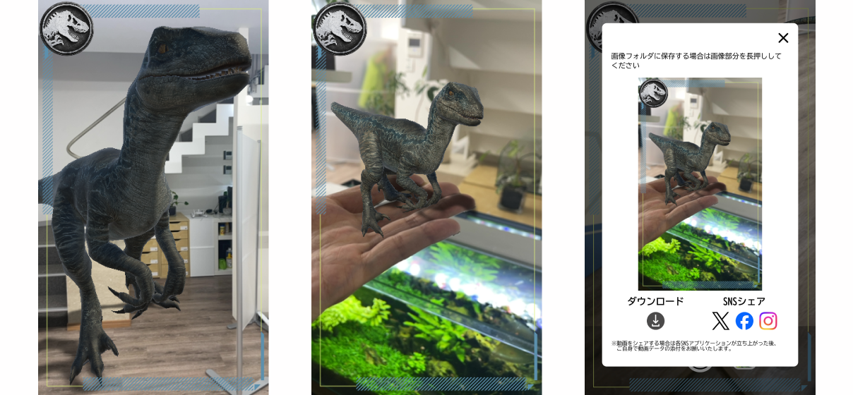 ハニカムラボでは、「ジュラシック・ワールド スペシャルAR」の制作・開発全般とSNSへの投稿部分の開発を担当。