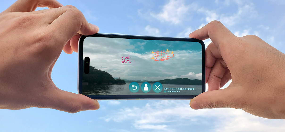 株式会社アミューズ 2024/07/20 https://sp.pornograffitti.jp/shimagotoPG/special/ 2024/7/20~2024/9/8に、ポルノグラフィティメジャーデビュー25周年を記念して、メンバーの故郷の広島県の因島にて開催の「島ごとぽるの展」。その中の謎解き企画「因島謎解きサウンドウォーク~そらいろの約束~」において、描いたメッセージやイラストを特定の方角の空にAR表示させるアプリ、「そらいろのメッセージ」を開発いたしました。