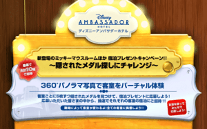 「ミッキーマウスルーム」などの客室に隠された複数のメダルを探すゲームやクイズにチャレンジし、見事すべてのメダルを獲得すると宿泊プレゼントに応募することができ、抽選でそれぞれの客室の宿泊にご招待します。