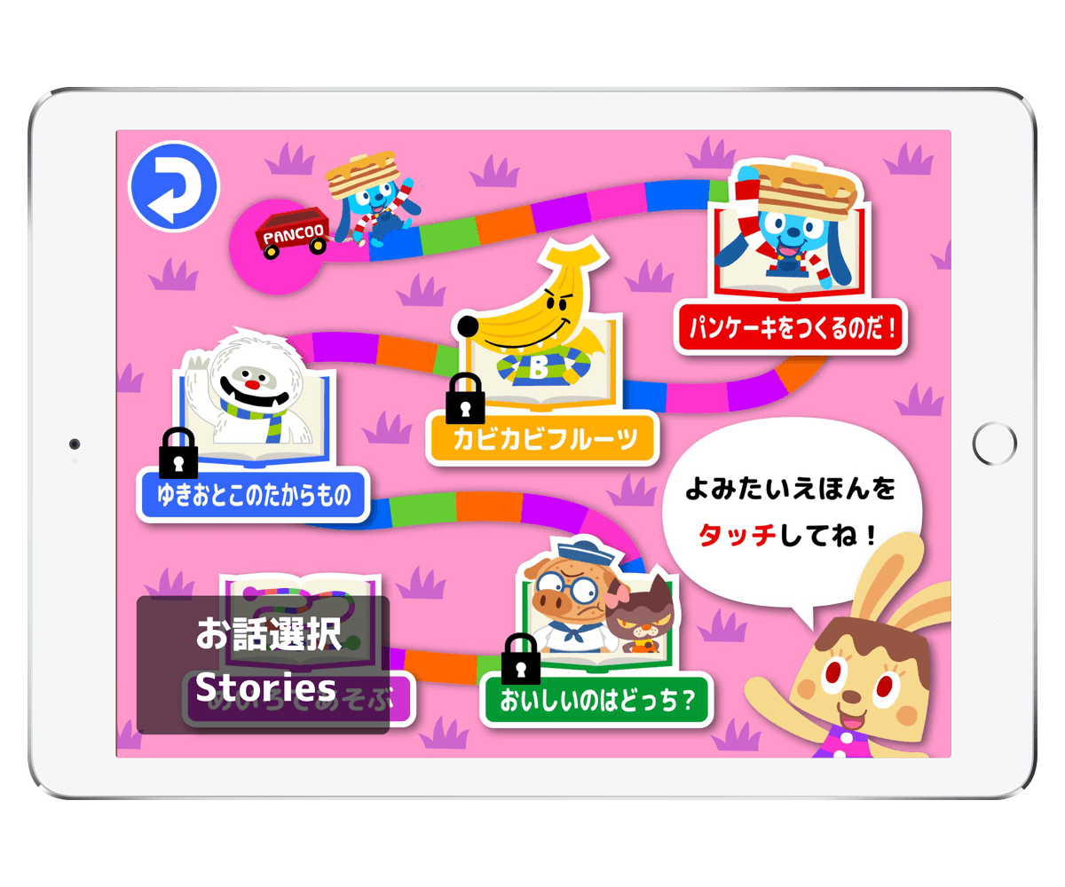 迷路ゲームもできる読み聞かせ音声付き絵本のiPadアプリ。日本語と英語の2言語に対応しているほか、お話を読む声を録音して再生することもできます。イワタナオミさんの手によるかわいくてポップなイラストで魅力的な世界を、パンケーキ大好きのパンクーと一緒におやつの森で冒険しよう! Credit Director / Technical Director: 河原田 清和