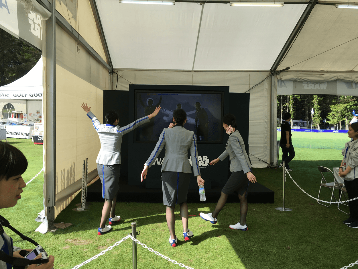 全日本空輸株式会社 2016/09/15 https://www.ana.co.jp/anaopen/event/ 2016年9月15日〜18日の4日間で開催された「2016 ANAオープンゴルフトーナメント」会場内の観客ブースに、子どもから大人まで楽しめるデジタルコンテンツを展示。