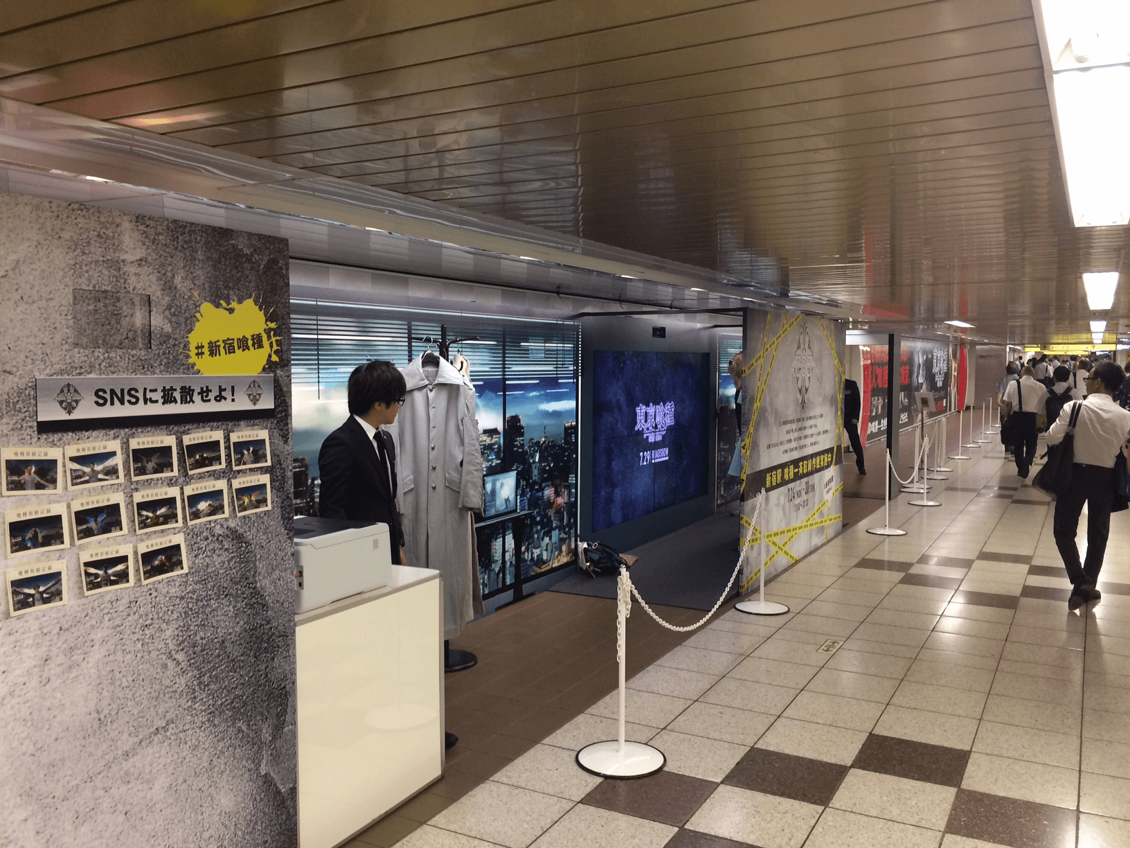 「東京喰種」制作委員会 2017/07/24 - 2017/07/30 http://tokyoghoul.jp/news/2017/07/21/shinjyuku_cp/ 2017年7月24日から30日まで東京メトロ新宿駅スーパープレミアムセット前(東京メトロ新宿駅・メトロプロムナード)にて【新宿駅喰種一斉取締作戦】と題して、喰種(グール)の特徴である捕食器官・赫子(かぐね)を体感できるイベントを開催。