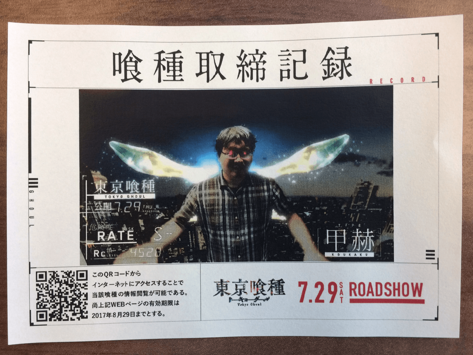 参加者自身の赫子画像は会場の掲示板に張り出され、プリントアウトして参加者にプレゼント。QRコードも同時にプレゼントされるので後からスマホ等で見ることもできます。