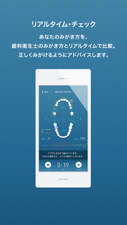 歯みがきデータを解析し、歯科衛生士のブラッシングデータをもとに、より正しくみがけるようサポート。まったく新しい歯みがき体験がはじまります。