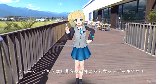 紹介アテンダントとしてハニカムラボのオリジナルキャラクター「ハニカ」を採用。「ハニカ」による説明案内ともに、臨場感あふれる360度動画で本社内部や工場の様子を楽しみながら見学できます。