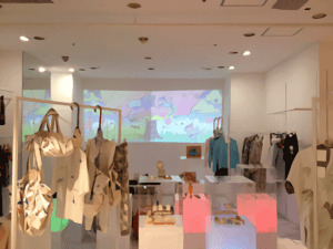 プロジェクターを2台使って壁一面にゲームを投影。大画面でカフンちゃんとハナコちゃんが暴れ回ります!